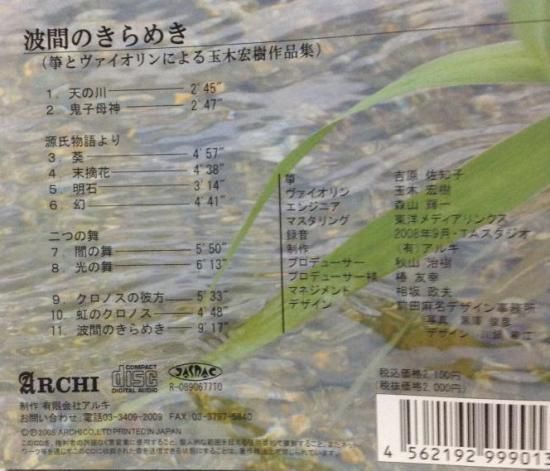 投稿日: 2026年1月24日2026年1月29日 投稿者: admin波間のきらめき 単価:2,100円(税込)CD型番:ARCH 10802 琴柱を自由に調律することによって実現した・・・ 琴柱を自由に調律することによって実現した、箏とヴァイオリンの美しいコ ラボレーションハーモニーをお楽しみ下さい。 ご注文はこちら 商品名: 単価: 数量: —以下から選択してください—12 ※恐れ入りますが、数量に限りがございますので、ご注文は1品目2(枚・冊)まででお願いいたします。 ※配送料(500円)及び振込手数料はお客様のご負担となります。 お買上げ金額と配送料の合計金額(振込手数料を除く): ※送信後に当会からメールが自動返送されます。 ※その自動返信メールに記載された振込先に「お買上げ金額と配送料の合計金額」をお振込み下さい。 ※お振込期限は本日から3日以内とし、遅れた場合はご注文はキャンセルになります。 ※お振込みを確認次第、商品を発送いたします。 お名前: ご送付先: メールアドレス: メッセージ 特定商取引法に基づく表記を確認し、同意しました Δ Post Views: 36
